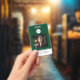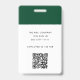 Um crachá de identificação corporativo minimalista moderno que pode ser personalizado com o logotipo da sua empresa, nome do funcionário, número de identificação, detalhes de contato e um código QR no verso. Este design de crachá profissional apresenta tipografia minimalista moderna e uma paleta de cores verde e branco. Ideal para qualquer empresa profissional como a indústria hoteleira, como crachá de identificação para um funcionário de hotel, imobiliária ou outro negócio.