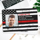 Identifique-se facilmente e ao seu bombeiro na estação com essa placa de identificação personalizada da bandeira da linha vermelha fina com foto, logotipo, código de barras, crachá de identificação de bombeiro. Personalize com foto de bombeiro, nome, número de identificação e departamento de bombeiros. Personalize a parte de trás com o logotipo e código de barras da sua estação de bombeiros ou qualquer outra informação. Este crachá de identificação de bombeiro da linha vermelha fina é perfeito para todos os bombeiros, bombeiros voluntários, bombeiros, chefe, capitão e tenente. DIREITOS AUTORAIS © 2020 Judy Burrows, Black Dog Art - Todos os direitos reservados. Placa de identificação personalizada de bombeiro com foto Crachá de identificação de bombeiro