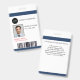 Um design de cartão de identificação de funcionário personalizado elegante e profissional, perfeito para empresas, organizações e companhias. Este crachá inclui espaço para a foto do funcionário, nome, cargo, ID do funcionário, código de barras e ano de validade. A parte traseira apresenta detalhes da empresa, site e informações de contato para fácil identificação em caso de perda.