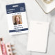 Um distintivo de identificação de professor personalizado minimalista moderno com logotipo da escola, foto e detalhes. Personalize com seu logotipo, foto e detalhes para criar seu próprio crachá de negócios branco elegante único.