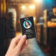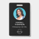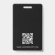 Apresentamos nosso "Modelo de Crachá de Identificação Personalizável para Funcionários" – uma solução prática para criar crachás de identificação para funcionários. Este modelo permite personalizar o logotipo, incluir uma foto de cada funcionário e gerar um código QR no verso, que pode ser personalizado para a identificação de cada funcionário ou vinculado ao seu site. Fundo preto, design sofisticado.