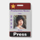 Cartão de Imprensa -1 Em plástico vertical, fácil de personalizar com sua foto, texto, ano e logotipo. Belos Crachás de ID de Imprensa são perfeitos para eventos especiais, locais e produção de filmes/televisão em estúdio. O Cartão de Imprensa mede 2,13" x 3,38, é feito de Plástico PVC, durável e não desbota ou rasga.