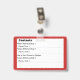 Personalize este crachá para o senhor mesmo, e para seus amados, em caso de urgência. Seja certo incluir toda a informação médica importante. "Fora o contato da área" é importante no caso de uma emergência regional que possa afetar telefones ou faça suas pessoas locais do contato da emergência não disponíveis. Use a característica da personalização para adicionar mais campos, contatos e o outro texto como desejado.