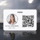 SUBSTITUA A IMAGEM POR FOTO QUADRADA E CÓDIGO QR Professional Elegante e Moderno Minimalista Crachá de Nome de Código QR preto branco branco preto que permite incluir foto ou foto de captura de cabeça, nome, informações de contato do Título do Trabalho.