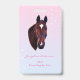 Este cavalo deslumbrante está olhando diretamente para você com sua adorável estrela branca. Abaixo do cavalo estão dois modelos fáceis para o seu texto personalizado e o fundo é um rosa bonito a azul.