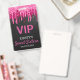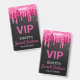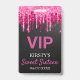 Crachá VIP de aniversário de Doce Dezesseis Chic apresenta um fundo preto com brilho rosa gotejante.