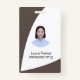 Limpe o crachá personalizado de funcionários com foto e texto na apresentação padrão curvada moderna, em cores preto, castanho e branco