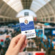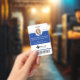 Crachá Círculo de Funcionário Médico Azul Foto ID e Logot