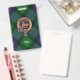 Crachá da crista Clan Blair rodeado por uma correia e fivela sobre fundo tartano. Texto personalizado.