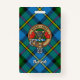 Crachá da crista Clan MacLeod rodeado por uma correia e fivela sobre fundo tartano. Custom Text.