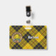 Clan MacLeod do crachá da crista Lewis rodeado por uma correia e fivela sobre fundo tartano. Texto personalizado de ambos os lados.