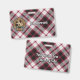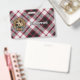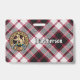 Crachá da crista Clan MacPherson cercado por uma correia e fivela sobre a caça ao fundo tartano. Texto personalizado de ambos os lados.
