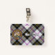 Crachá da crista Clan MacPherson cercado por uma pulseira e fivela sobre o fundo do tartan vestido. Texto personalizado de ambos os lados.