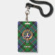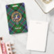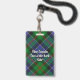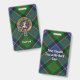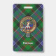 Crachá da crista Clan Paterson cercado por uma correia e fivela sobre fundo tartano. Custom Text.