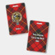 Crachá da crista Clan Wallace rodeado por uma correia e fivela sobre fundo tartano. Texto personalizado.