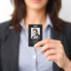 Crie uma aparência profissional com este crachá de ID clássico. Um design simples, combinado com figuras elegantes e tradicionais, impresso em preto e marfim. Sua foto, nome, negócios e profissão personalizados estão na frente e suas informações de contato estão na parte de trás. Todo o texto pode ser personalizado ou excluído para que você possa incluir as informações desejadas.