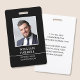 Crie uma aparência profissional com este crachá de ID clássico. Um design simples, combinado com letras elegantes e tradicionais, impresso a preto e branco. Sua foto, nome, negócios e profissão personalizados estão na frente e suas informações de contato estão na parte de trás. Todo o texto pode ser personalizado ou excluído para que você possa incluir as informações desejadas.