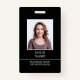 O Classic Professional ID Black White Security Cria uma aparência profissional com este crachá de ID de estilo clássico. Um design simples, combinado com letras elegantes e tradicionais, impresso a preto e branco. Sua foto, nome, negócios e profissão personalizados estão na frente e suas informações de contato estão na parte de trás. Todo o texto pode ser personalizado ou excluído para que você possa incluir as informações desejadas. modelo de foto de nome personalizado, crachás de etiqueta de segurança, título de cargo de funcionário personalizado, diretor executivo de diretor, design minimalista elegante, executivo de consultoria de negócios, preto e branco, tipografia tradicional clássica, nítida e simples crachá de passe de identificação moderna