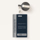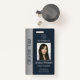 Personalize facilmente este crachá de identificação de fotos de funcionários com estilo luxuoso profissional de cor prateada e azul com seus detalhes personalizados.