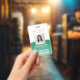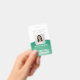 Representa a sua empresa em estilo fornecendo funcionarios com crachás de identificação modernos e profissionais. O logotipo, a foto, o código do bar e todos os textos deste modelo são simples de personalizar. O design verde e branco apresenta um plano de fundo de gradiente ombre com um arco curvo elegante, o logotipo da sua empresa, uma imagem quadrada, o nome e o título do funcionário e UPC / código de barras no verso. Ele pode oferecer organização e segurança para o funcionarios da empresa, ao mesmo tempo que apresenta a marca corporativa com uma aparência na moda clássica.