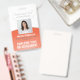 Representa a sua empresa em estilo fornecendo funcionarios com crachás de identificação modernos e profissionais. O logotipo, a foto, o código do bar e todos os textos deste modelo são simples de personalizar. O design cor de laranja e branco apresenta um fundo de gradiente ombre com um arco curvo elegante, o logotipo da sua empresa, uma imagem quadrada, o nome e o título do funcionário e UPC / código de barras no verso. Ele pode oferecer organização e segurança para o funcionarios da empresa, ao mesmo tempo que apresenta a marca corporativa com uma aparência na moda clássica.