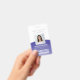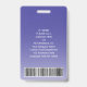 Representa a sua empresa em estilo fornecendo funcionarios com crachás de identificação modernos e profissionais. O logotipo, a foto, o código do bar e todos os textos deste modelo são simples de personalizar. O design roxo e branco apresenta um fundo de gradiente ombre com um arco curvo elegante, o logotipo da sua empresa, uma imagem quadrada, o nome e o título do funcionário e UPC / código de barras no verso. Ele pode oferecer organização e segurança para o funcionarios da empresa, ao mesmo tempo que apresenta a marca corporativa com uma aparência na moda clássica.