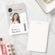 Crachá de ID corporativo simples e na moda que pode ser facilmente personalizado com a foto, o nome, a posição e o código de barras do seu funcionário. O design na moda apresenta um layout minimalista moderno e uma faixa de blocos em cinzas de pedra para se destacar da multidão.