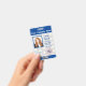 Este crachá de identificação de fotos azul e branco apresenta uma estrela polícia integrada no design. Um código de barras é colocado na parte inferior frontal para o caso de sua empresa usar a digitalização para entrada em áreas sensíveis. Aperte a segurança com esses crachás de identificação de funcionários em um design azul e branco nítido que permite espaço para seu logotipo, tanto na frente como no verso. Também no verso está o seu endereço e número de telefone no caso de um crachá ser perdido. As áreas que podem não se aplicar a sua organização individual são facilmente eliminadas.