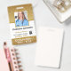 Um modelo básico de design de negócios que oferece posicionamento para o logotipo de sua empresa, o nome do funcionário, o número de identificação e outras caixas de texto generosas para obter informações. Você pode adicionar um código de bar digitalizável na parte traseira, bem como modificar a cor de fundo.Design recursos simulados (impressos) detalhe de brilho