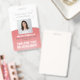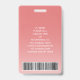Represente seu negócio com estilo fornecendo ao seu pessoal crachás de identificação modernos e profissionais. O logotipo, foto, código de barras e todo o texto neste modelo são fáceis de personalizar. O design rosa e branco apresenta um fundo gradiente ombre com um arco curvo elegante, o logotipo da sua empresa, uma foto quadrada, nome e cargo do funcionário e código UPC / código de barras no verso. Ele pode fornecer organização e segurança para os funcionários da empresa, ao mesmo tempo em que apresenta a marca corporativa com uma aparência clássica e elegante.