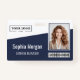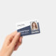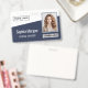 Dê à sua marca uma borda dinâmica com este design de crachá azul marinho horizontal. Com um bloco de cores nítido, diagonal, o layout adiciona um toque moderno e enérgico a um item profissional clássico. A sofisticada divisão em dois tons organiza efetivamente as informações dos funcionários e o logotipo de sua empresa, criando uma identidade visual poderosa e memorável.