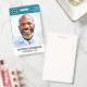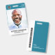 Um crachá moderno e simples que não se distrai dos detalhes importantes. É fácil ler de longe. Adicione um logotipo personalizado e detalhes da empresa. Adicione o nome do funcionário, a foto e o título profissional. O bar de cor pode ser modificado para corresponder às cores oficiais da empresa. No verso, adicione mais informações, como endereço de devolução e número de ID do funcionário. Perfeito para logotipos redondos.