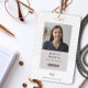 Professor simples e elegante e crachá de identificação corporativa que pode ser facilmente personalizado com a foto, o nome e a posição do seu funcionário. O design elegante apresenta um layout minimalista moderno e um banner de bloco em rocha cinza para dar uma identidade clara para as escolas.