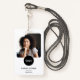 Crachá mínimo de identificação de foto de funcionário com código QR. O layout também inclui o logotipo comercial com nome e título na frente. O nome e os detalhes da sua empresa, incluindo o número de identificação do funcionarios, podem ser adicionados à parte traseira do cartão.