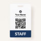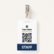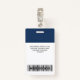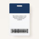 Personalize facilmente esses crachás de nome comercial sem fotos, com o Qr Code legível (sempre funciona!), o Bar Code e o logotipo de grande empresa. Este criador de ID da empresa tem um design simples de nome de etiqueta comercial em marinho azul e branco totalmente personalizável em tamanhos frontais e traseiros, fontes básicas e modernas sans-serif e uma aparência profissional e clara, perfeita para funcionários de pequenas empresas, patrão, convidados. Estes crachás de identificação de negócios estão disponíveis com ferro-velho, clipe metálico ou com retratável. Aproveite o excelente serviço de impressão de crachás do Zazzle! Sem ordem mínima, e quanto mais você comprar, mais você economiza. Os descontos em massa estão disponíveis com várias encomendas, também para diferentes funcionários!
