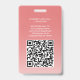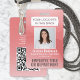 Represente seu negócio com estilo fornecendo ao seu pessoal crachás de identificação fotográficos modernos e profissionais. O logotipo, a foto, o código QR e toda a redação neste modelo são simples de personalizar. Para criar seu próprio código QR usando o gerador, basta digitar a URL do site no modelo. O design também apresenta um fundo gradiente ombre rosa com arcos curvos únicos, o logotipo da sua empresa, uma imagem quadrada e o nome e cargo do funcionário. É adequado como uma ferramenta de marketing promocional ou como um passe de acesso para um evento, como uma conferência, show, festival ou festa vip. Pode fornecer organização e segurança para os funcionários da empresa, ao mesmo tempo em que apresenta a marca corporativa com uma aparência elegante e clássica.