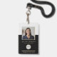 Crachá de ID corporativo simples e na moda que pode ser facilmente personalizado com a foto, o nome, a posição e o código de barras do seu funcionário. O design na moda apresenta um layout minimalista moderno e uma faixa de blocos em cinzas de pedra para se destacar da multidão.