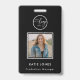 Um ID de funcionário personalizado preto e branco minimalista e elegante que você pode personalizar. Substitua a foto, logotipo da empresa ou negócio e edite o texto e o código QR na parte de trás. Perfeito para uso em escritório, negócios ou escola.