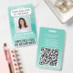 Representa a sua empresa em estilo fornecendo funcionarios com crachás de fotos modernos e profissionais de identificação. O logotipo, a foto, o código QR e todos os textos deste modelo são simples de personalizar. Para fazer seu próprio código QR usando o gerador, basta digitar o URL do site no modelo. O design também apresenta um plano de fundo azul-lacrimogêneo com arcos curvos exclusivos, o logotipo de sua empresa, uma imagem quadrada e o nome e título do funcionário. É adequado como uma ferramenta de marketing de promocional ou como um passe de acesso para um evento, como uma conferência, concerto, festival ou festa vip. Ele pode oferecer organização e segurança para o funcionarios da empresa, ao mesmo tempo que apresenta a marca corporativa com uma aparência elegante e clássica.