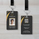 O moderno design de crachá preto e dourado apresenta o logotipo da sua empresa e código QR personalizado na parte de trás. Adicione o nome do funcionário, nome da empresa/título, logotipo (foto ou outro gráfico) e informações de contato. Você pode personalizar o tamanho do texto, fonte e cor de acordo com a sua própria preferência pessoal. Insira um endereço URL para criar um código QR escaneável vinculado ao seu site, perfis de mídia social ou qualquer outra plataforma.