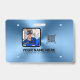 Crachá QRcode de foto de um escritório profissional minimalista azul.