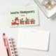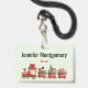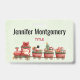 Um nome de etiqueta com uma imagem fofa e adorável feita com aquarelas. Papais noeis que conduzem um trem cheio de brinquedos para todas as crianças do mundo.