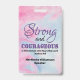 FORTE Crachá da Conferência Cristã de MULHERES CORAJOSAS com mensagens inspiradoras lendo FORTE E CORAJOSA É A MULHER QUE RECEIA O SENHOR, que se baseia em Joshua 1:9. Tipografia Mauve e preta sobre fundo azul e rosa turvo. Crachá ideal para conferências cristãs - ou talvez como crachás de identidade para os grupos religiosos, aulas, grupos motivacionais de mulheres, etc. Ofertas e recursos correspondentes disponíveis.