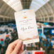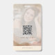 The front features a customizable event title, name, and role, while the back includes an optional photo overlay and QR code area for easy sharing. The photo is designed with a soft opacity, allowing your image to blend seamlessly into the background or be removed entirely for a cleaner look.