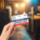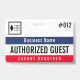 Crachá de passe de visitante com um design simples em preto, branco, azul-marinho e vermelho. Convidado autorizado está escrito no crachá do convidado, mas você pode alterar o texto para atender às suas necessidades. Personalize ainda mais com o logotipo da sua empresa e o nome da empresa.