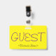 Este design moderno de crachá apresenta a mensagem "CONVIDADO", e um nome de empresa personalizável ou outra mensagem personalizada. Um crachá como este pode ser usado para indicar que um visitante ou convidado em um local de trabalho está autorizado a estar lá. [~Z0000307]