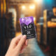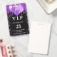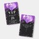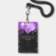 Um crachá moderno, na moda e glamouroso para uma festa de aniversário 21 (ou qualquer idade). Um fundo preto com brilho púrpura, pingos, pintura pingando e balões. Com o texto: VIP. Personalizar e adicionar nome, idade, endereço/data. Para manter as hastes, exclua apenas o nome da amostra, deixe os espaços ou emoji na frente e depois do nome. Voltar: adicione detalhes de parte ou exclua. Traseira: sem design ou cor (menos caro)