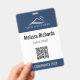 Streamline your check-in process with this Corporate Event QR Code ID Badge Template, designed specifically for trade shows, conferences, and large-scale summits. This professional badge features a prominent top header for your company logo and a central QR code area, making it perfect for touchless entry or digital networking. The clean white middle section clearly displays the attendee or staff member's name and role, framed by sophisticated navy blue accents for a polished, official look. Durable and fully customizable, it allows organizers to easily update event titles and individual details, ensuring a cohesive brand experience for all guests, sponsors, and team members.