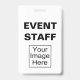 Os crachás da identificação com foto dos funcionarios do evento especial que incluem um modelo da imagem do =n você podem substituir com as fotos dos funcionarios, um logotipo da empresa, ou os gráficos do evento. Projetado para incorporado, partido, concerto, ou funcionarios e segurança da convenção.