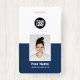Personalize facilmente este Crachá de Identificação de Segurança de Nome de Funcionário Personalizado com Foto, Nome do Funcionário, profissão e logotipo de negócio. Um simples design de negócios em marinho azul e branco totalmente personalizável nos tamanhos frontal e traseiro, fontes básicas e modernas sans-serif para uma aparência profissional e clara. Os crachás de identificação estão disponíveis com jardim, clipe de metal ou com retratável. Sem ordem mínima.